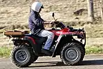 - all-terrain vehicle, ATV, quad, quad bike, four-wheeler, quadricycle