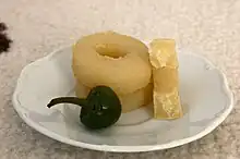 - Olomouc cheese (a kind of ripened soft cheese, characteristic with its strong scent, distinctive pungent taste and yellowish colour, nowadays made in the town of Loštice, the Czech Republic)