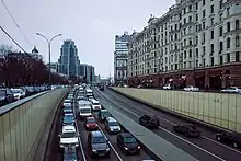 - traffic jam (situation in which road traffic slows significantly or stops altogether for a period of time)