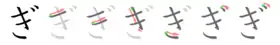 - caractere do silabário japonês hiragana; é transliterado como "gi" no Sistema Hepburn