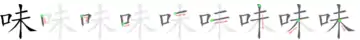 - radicais: 口 ("boca") + 未 (valor fonético)