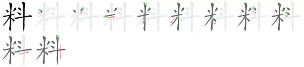 料 (pinyin: liào; cantonês: liu6-2, liu6)