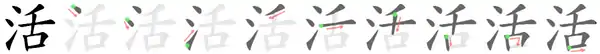 活 (hoạt, oặt, oạc)
