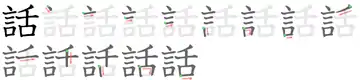 話 (simplificado: 话, pinyin: huà (hua4), Wade-Giles: hua4)