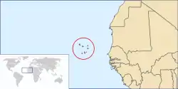 - (País) país formado por um arquipélago a noroeste da África, em que o português é língua oficial; sua capital é Praia; seu nome oficial é República de Cabo Verde