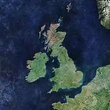Imagem de satélite das Ilhas Britânicas.