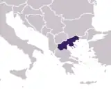 - Do antigo povo denominado "makednoi", macedônio, que tem o status de povo helênico contestado por alguns estudiosos. Hesíodo afirma que o nome deriva de Makedon, o real criador da região, filho de Zeus e neto de Deucalion. Apesar de ter o mesmo nome da antiga Macedônia, que formou um dos maiores impérios da Antiguidade sob Alexandre, o Grande, a maior parte do território da atual República da Macedônia fazia parte do reino da Paiônia (habitado pelos antigos paionianos), conquistado pelos macedônios e depois por Roma, tornando-se parte da província romana da Macedonia Salutaris. O nome legal do moderno país é motivo de disputa entre gregos (que reinvidicam o nome Macedônia como um patrimônio cultural grego) e a República da Macedônia (que reinvidica o direito de usar tal termo).