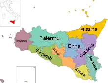 - região autônoma com estatuto especial da Itália meridional com 25.710 km² e 5 milhões de habitantes, cuja capital é Palermo
