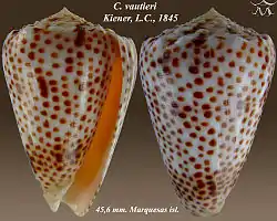 - molusco da ordem dos conídeos , da espécie Conus vautieri, da classe dos gastrópodos (caracóis)
