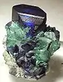 - mineral monoclínico, constituído de carbonato de cobre; sua fórmula química é Cu3(CO3)2(OH)2; tem a cor azul marinho