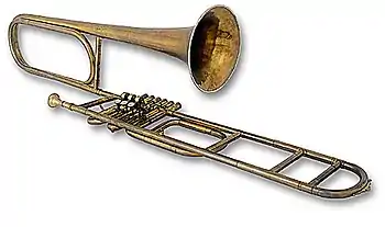 - Do latim bucina, pelo francês antigo basson/bosine, pelo alto alemão médio basune;