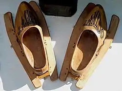- espécie de raquetes de neve; armação ou pequenas tábuas que são atadas à soca de madeira para caminhar sobre a neve