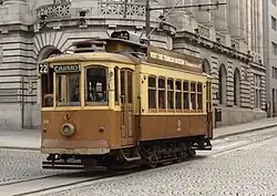 - veículo urbano, movido a eletricidade que se desloca sobre carris/trilhos de ferro, para o transporte coletivo de passageiros (por redução no uso corrente da designação genérica "carro elétrico")