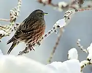 - ave de cores semelhantes ao pardal, de bico fino, que mora na alta montanha, Prunella modularis