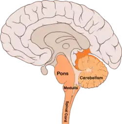 - (anatomia) ponte (de Varólio)/protuberância (anelar), uma das três porções do tronco cerebral